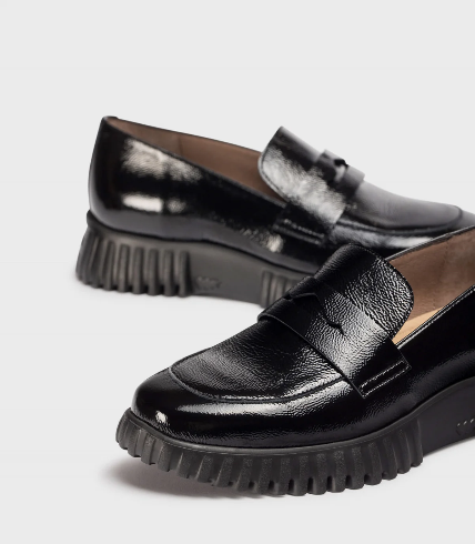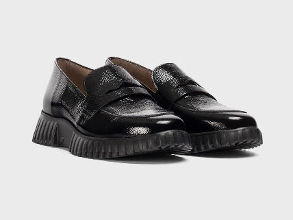 Wonders Flexfly 02 Leather Slip-On A-4402 Wine Leather combines fashion and function with a distressed patent leather upper for a sleek look. Designed for comfort, it features a Memory Gel leather cushioned insole that supports all-day wear. The ribbed outsole, enhanced with Wondersfly™ Technology, ensures durability and reliable performance. Easy to slip on, these loafers offer a refined yet practical choice for everyday style.